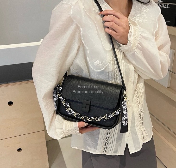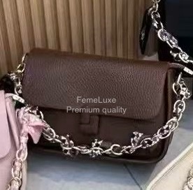 - প্রত্যেকটি ব্যাগের সাথে একটি মোটা রূপালী রঙের চেইন স্ট্র্যাপ রয়েছে।